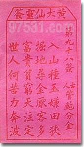 黄大仙抽签(第98签)